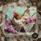 Añada un toque de encanto vintage a sus proyectos de artesanía con este hermoso diseño de papel de tejido de descomposición. Con una gallina moteada descansando con gracia en una rústica canasta de mimbre adornada con un delicado encaje blanco y rodeado de aromáticas flores de lilo, esta obra de arte capta la esencia de la elegancia rural. El suave fondo de flores turquesa y los tonos románticos lo convierten en el lugar perfecto para bodas de la casa de campo, artesanía de bricolaje, envoltura de regalo o decoración. Una adición única y artística para elevar tus esfuerzos creativos.