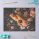 Este papel de tejido descolorido presenta un pollo encantador encaramado entre las ramas de un árbol floreciente, rodeado de flores de rosa exuberante. Envuelto en un rico fondo negro, los vivos florales y el pájaro detallado crean un contraste dramático que es a la vez caprichoso y elegante. Ideal para proyectos de decoración de casas de campo, acentos de mobiliario o artesanías de inspiración natural.