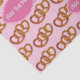 Un pretzels con el motivo de amor de los diferentes retornos salados de masa superpuestos. Los nudos del pan aparecen en un fondo rosa pálido con un área de texto coordinada en rosa rosa. Añade una vez tu saludo o nombre y se repetirá en las áreas enmarcadas de toda la hoja. Romántico y dulce, esto es adorable para una pareja que se ata el nudo o un evento de canicas y bebidas en honor de un recién nacido, niña o joven.