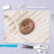 Cuenta con un suéter de cardigan de punto de color crema con un botón de madera. Un papel tisular de suéter acogedor para envolver tu regalo.