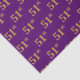 Este diseño de papel tisular presenta el número ordinal "51st" con un colorante falso/imitación de color dorado. También tiene un fondo morado. Tal vez podría ser usado con regalos que se dan para el primer cumpleaños de alguien, o tal vez para el cincuenta primer aniversario de una pareja casada, o para algún otro evento u ocasión 51. [~Z0000157]