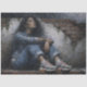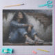 Rainy Urban Woman Blue decoupage tissue paper features a moody, cinematic portrait of a woman seated against a weathered brick wall, wrapped in deep blue denim tones and soft urban grit. Painterly texture, rain-washed atmosphere, and expressive emotion make this design ideal for statement furniture, wall art, trays, journals, and mixed-media projects where modern realism meets soulful storytelling.