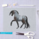 Ein digitales Design eines laufenden, spanischen Pferdes: Ramirez. Braun/Silberfarbenes (Roan) Deckhaar, schwarzes Langhaar. Ideal für Pferdeliebhaber.