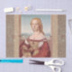 Este portait es un hermoso cuadro renacentista, llamado Retrato de Joven Mujer con Unicornio, pintado por Rafael en 1506. Mira de cerca - la dama está sosteniendo a un bebé unicornio en sus brazos.