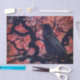 ¡Para los fanáticos góticos y cuervos! Papel de tejidos para envolver regalos y usarlos para proyectos de manufactura que muestra la imagen de un Raven negro y un arce japonés rojo, retorcido y llamativo, junto con guarnecido negro.