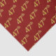 Este diseño de papel tisular presenta el número ordinal "47" con un colorante falso/imitación de color dorado. También tiene un fondo de color rojo. Tal vez podría usarse con regalos que se dan para alguien que cumple cuarenta y siete años, o tal vez para un matrimonio que cumple cuarenta y siete años de boda, o para algún otro evento u ocasión. [~Z0000154]