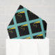 Un regalo único de graduación y decoración de fiesta de grado con patrón de tapón negro y dorado de graduación sobre fondo azul verde azulado.