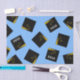 Papel tisú decorativo para regalo de graduación o fiesta con gorras de graduación negras y doradas sobre fondo azul claro. Edite el texto para agregar el año de la clase graduada.