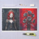 Sumérjase en el encantador mundo de la elegancia gótica con este conjunto coordinado de dos diseños de papel tisular. Un diseño presenta una impresionante Reina Oscura vestida con un atuendo gótico de encaje victoriano, con un cabello rojo intenso y una cara pálida y etérea. El otro muestra a rosas negros con un fondo rojo profundo, creando una combinación perfecta para la belleza real de la Reina Oscura. Ideal para la desconexión, este conjunto es perfecto para la elaboración de artesanías, el reacondicionamiento de muebles, los proyectos de Halloween y la adición de un toque de sofisticación oscura a cualquier creación.