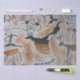 Hace miles de años, nuestros ancestros lejanos exploraban en profundidad los sistemas de las cuevas y después pintaban los animales que deseaban cazar en las paredes. Iluminados solamente por antorchas tenues y humeantes, crearon imágenes de renos, caballos, rinocerontes lobos y toros poderosos en ricos matices de tierra de ocre, marrón, rojo y carbón vegetal. Inspirada por estos antiguos artistas, esta es una colorida representación de los poderosos animales de la era del hielo y los hombres que los cazaron con un giro moderno y abstracto.