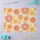 Add atomic groovy charm to your gift wrap with this tissue paper featuring retro 70s groovy flowers in coral pink, mustard yellow and orange pattern with atomic starbursts on light cream background. Perfect for retro themed birthdays, anniversaries and celebrations
