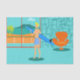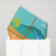 Todos los días puede ser un día en la playa con este papel retro Surfer Dude. El diseño de arte minimalista, al estilo de los años 60, cuenta con un tipo dorado, rubio y surfista, todo listo para tomar una ola. Nuestro surfista en forma mira al océano a través de las puertas correderas de cristal de su casa frente a la playa. Está parado en su sala de estar de color agua. Podemos ver un aqua y turquesa, una pared de piedra y una moderna silla naranja de mediados de siglo. En el lado opuesto de la puerta de cristal se ve un patio. Más allá, hay una playa de arena dorada, palmeras balanceadas, un océano azul pavo real y un cielo acuático. A lo lejos, podemos ver una verde azulada isla volcánica, que por el momento está latente. Surfer Dude sostiene una tabla azul y lleva pantalones cortos azules con estampado de tiki. Atrapa algunas olas y comparte el amor con este diseño kitsch de verano!