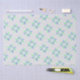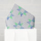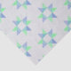 Bloques de edredón azul y verde casual en el patrón de la estrella de cinta sobre papel de tejido blanco para su descomposición y diseño de deseos profundos. Encajar regalos para un amigo de costura.