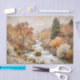 Golden Autumn River Decoupage de Decoupage_Boutique captura el resplandor de un vibrante día de otoño. Un arroyo de montaña fluye rápidamente entre piedras, enmarcado por árboles brillantes en tonos de oro, rojo y crema suave. El fondo brumoso da la impresión de la luz de la mañana que atraviesa el bosque, trayendo calidez y renovación.