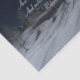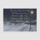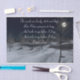 Papel de papel de regalo con la imagen de un bosque nevado en una noche a la luz de la luna y un verso del poema de Robert Frost, "Parando por los bosques en una noche de nieve".