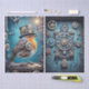 Robín de vapor adornado con engranajes y relojes, colocado sobre un fondo azul. Ideal para el reacondicionamiento de muebles y otros proyectos creativos.