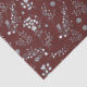Papel seda con un modelo del blanco puro y de las ramitas y de las bayas del gris en un fondo marrón rojo del terciopelo.