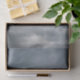 Las nubes turbulentas oscuras se están rompiendo en el primer plano de esta fotografía de color. Las capas de nubes se vuelven tonos más claros de gris más profundo en la imagen. Se ven indicios de cielo azul claro más allá de las nubes de tormenta cuando el tiempo empieza a despejarse. Fotografía digital a color. Copyright © Claire E. Skinner. Todos Los Derechos Reservados.