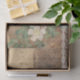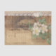 Un collage de estilo vintage de una fotografía antigua, flores blancas y encaje sobre un angustiado fondo de escritura a mano. Ideal para envolver regalos o para proyectos de artesanía y desconexión.