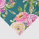 Papel De Seda Rosas acuarelas en rosa y crema en Verde azulado