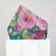 El Verde azulado oscuro es el telón de fondo perfecto para esta rosa femenina con motivos florales en tonos rosa, melocotón y crema.