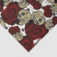 Papel De Seda Rosas Rojas y Calaveras Floral Negro Gótico Blanco
