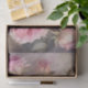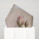 Un diseño romántico de rosas rosadas secas colocadas sobre pergamino con una elegante letra cursiva del viejo mundo, papel de seda decoupage.