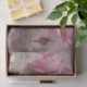 Un diseño romántico de rosas rosadas secas colocadas sobre pergamino con una elegante letra cursiva del viejo mundo, papel de seda decoupage.