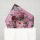 Rosas rosas rosas con hojas grises sobre un fondo rosado. Algunos de los grupos de flores también tienen rosas rojas, pero la mayoría son rosas. Perfecto para artesanías, envoltura de regalo y desacoplamiento. ¡Asegúrate de comprobar la bolsa de regalo correspondiente!