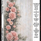 Un diseño floral romántico shabby chic que presenta un arreglo en cascada de suaves rosas rosadas que trepan con gracia por el lado izquierdo de un fondo de madera rústica. Las rosas florecen en una variedad de tamaños, desde delicados capullos hasta flores llenas y en capas, creando un efecto natural de rosal trepador entrelazado con enredaderas y follaje suave y verde. Las tablas de madera desgastadas detrás de las flores añaden una encantadora textura de granja, con grietas sutiles, pintura pelada y tonos pálidos y descoloridos que realzan el estilo vintage. La composición floral vertical deja espacio abierto en el lado derecho, lo que hace que el diseño sea visualmente equilibrado y permite que las rosas se sientan como si estuvieran creciendo naturalmente a través de una vieja valla de jardín o pared de cabaña. La paleta