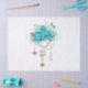 Llave de oro antiguo con rosas turquesa de moda decorados con hojas de oro blanco y cuentas rosas y azules. Color de moda. Rosas turquesas. Oro blanco. Tifanía azul.