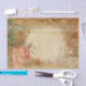Un diseño de estilo vintage con rosas rosas rosas rosas, hojas verdes y encaje sobre un fondo de escritura a mano. Ideal para envolver regalos o para proyectos de artesanía y desconexión.