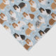 Los perros de la raza Rough Collie se sientan y se paran y vuelan con abrigos estables, tricoloreados, suaves y blancos, con huesos de perro dispersos y patrones de huellas de alfileres.