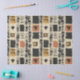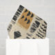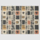 Earthy geometric pattern tissue paper inspired by tribal mudcloth textiles, featuring hand-painted rectangles, diamonds, and triangles in charcoal black and terracotta on a textured beige background. A warm boho design ideal for rustic décor lovers, artisan style fans, and anyone drawn to earthy geometric aesthetics.