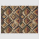 Warm geometric stripe pattern tissue paper featuring tribal-inspired diamonds, zigzags, and textured vertical bands in earthy brown, terracotta, tan, beige, and charcoal tones. A cozy boho design ideal for southwestern décor lovers, rustic style fans, and anyone drawn to earthy, handcrafted aesthetics.