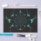 Occidente rústico verde azulado azul azul negro toro cráneo de vaca deslizar papel de tejido. Resumen del patrón de estilo de vaquero de la casa de campo kaleidoscope. Derechos de imagen de Marg Seregelyi Photography.