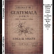 Un diseño de estilo de exportación de café vintage impreso sobre un fondo de arpillera ricamente desgastado, inspirado en sacos agrícolas tradicionales utilizados para transportar granos de café premium. El diseño presenta tipografía en negrita que anuncia "Producto de Guatemala - Antigua" con "Café 100% Arábica" mostrado debajo en letra clásica del comercio de café. En el centro de la composición, una ilustración botánica detallada de una rama de café con hojas y cerezas destaca el origen natural de los granos y agrega equilibrio visual al diseño. El nombre de la plantación "Finca El Volcán" aparece de manera prominente debajo de la ilustración, acompañado de marcas de cosecha, lote y peso en un formato estructurado de estilo de exportación típico de los envases históricos de café. Los tonos más oscuros de arpillera marrón y los bordes exteriores más oscuros crean una apariencia
