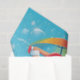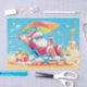 Las vacaciones están decoradas con un toque tropical, con un diseño lúdico en el que se encuentra Santa Claus sobre una tumbona a orillas de la playa. Con gafas de sol, una bebida festiva y palmeras balanceándose bajo un cielo soleado, este alegre diseño es perfecto para los Navidades de temática vacacional.
