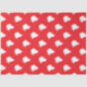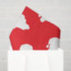 Silueta blanca de Santa Claus sobre fondo de patrón rojo.