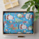 Este fabuloso tejido con Papá Noel, Rupas, Hombres de nieve y pingüinos en azul sería perfecto para que usted lo use al envolver los regalos de sus Navidades. Envuelve los regalos en cajas, llena las bolsas de regalo con ellas, o llena el espacio vacío en las cajas de envío para que cuando la familia o amigos abren su caja esté llena de papel festivo y regalos.