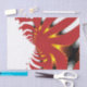 Un diseño artístico abstracto de una criatura mítica que recuerda a una anémona marina, en rojo, amarillo, blanco y oro.
