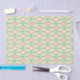 A seamless geometric pattern with overlapping teal circles forming diamond shapes against a peach and cream background, evoking a retro, calming vibe.