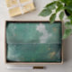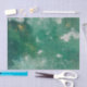 Pintura de acrílico flúida abstracta en verdes, blanco, y oro.