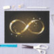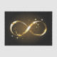 Oro, símbolo de infinito de joyas con estrellas doradas sobre fondo negro. Diseño con estrella dorada.