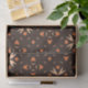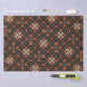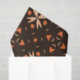 La imagen presenta un patrón repitiendo sin inconvenientes con un fondo marrón oscuro. El diseño incluye formas geométricas abstractas en tonos claros y naranjas oscuros. Los elementos principales consisten en: 1. Formas Starburst: Formas de estallido naranja claro con puntas puntiagudas, distribuidas equitativamente a lo largo del patrón. 2. Formas poligonales: Diversas formas poligonales pequeñas e irregulares en naranja oscuro, diseminadas alrededor de los estallidos. 3. Motivos de puntos: pequeños puntos y formas parecidas a lágrimas intercalan entre los elementos más grandes, añadiendo complejidad y textura al diseño. La estética general es audaz y dinámica, capturando la esencia vibrante y ecléctica del diseño de los años 70 con sus tonos tierra y formas abstractas.