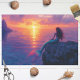 Sumérjase en un momento de serena belleza con esta encantadora obra de arte en la que aparece una sirena mirando una brillante puesta de sol. Este diseño cautivador celebra la magia del océano y el encanto de las criaturas míticas, perfectas para los amantes del mar y del arte por igual.