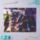 Las ilustraciones en este papel seda son una fotografía original de un sistema del tambor. Los tambores negros brillantes con sus bordes plateados reflejan los colores de las luces en el estudio, los azules, los rojos y los verdes. Los platillos sobre los tambores esperan para ser pegados.