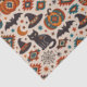 A vibrant Southwestern-inspired Halloween repeating pattern that blends traditional spooky icons with bold desert geometry. Black cats, bats, crescent moons, witches’ hats, spiders, and spiderwebs mingle with richly patterned pumpkins and striking Navajo-style motifs in warm clay orange, turquoise, teal, and deep charcoal. Set against a soft parchment-toned background, the design feels festive, graphic, and culturally inspired rather than spooky. The rhythmic layout and earthy color palette give the pattern a cozy desert-night atmosphere.