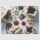 A richly detailed tissue paper design showcasing an elegant arrangement of spices like cardamom, cloves, saffron, coffee beans, ginger, and tea leaves. Perfect for food-themed gift wrapping or artisanal packaging, it brings warmth and authenticity with an organic, natural vibe.