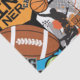 A bold, energetic sports collage featuring basketball, football, soccer, tennis, and baseball elements with dynamic typography like “Big Game,” “Goal Time,” and “Winner,” set in bright, high-contrast colors.